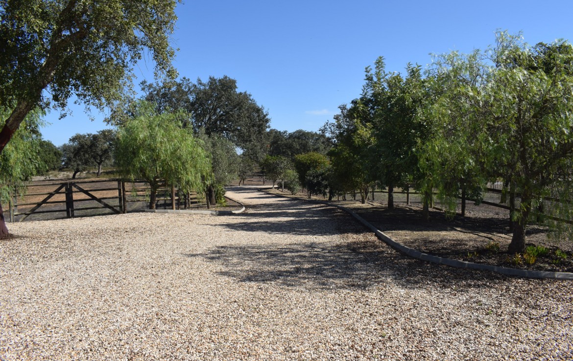 • Caminhos de acesso em gravilha ladeados por árvores, com zonas pavimentadas para maior praticidade
